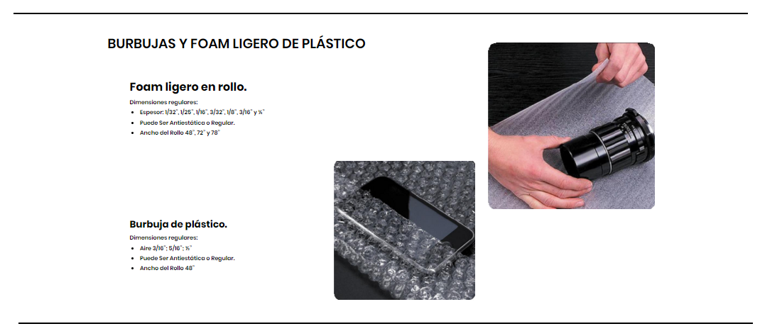 BOLSA DE PLÁSTICO, DE BURBUJA Y FOAM